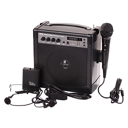 Pyle-Pro Portable Outdoor PA Speaker Amplifier and Microphone System with Bluetooth Wireless Streaming, Rechargeable Battery, Belt Pack Transmitter, Headset, Lavalier, Wired Handheld Mic - PWMA220BM