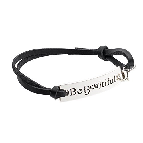 Inspirational Jewelry Bracelet – Be {You} Tiful Quote – Silver Charm Wrap – Engraved Sayings for Inspiration, Motivation for Women, Men, Teens, Girls.