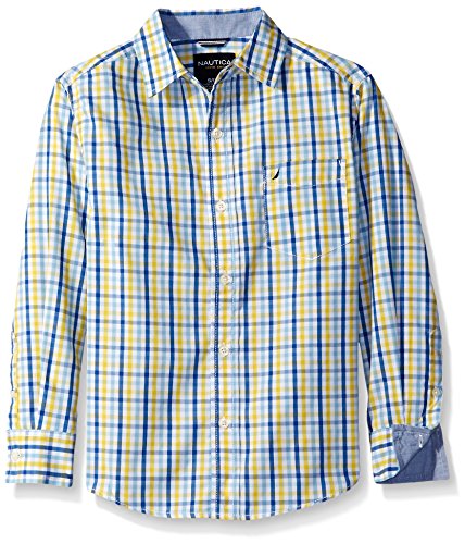 Nautica Big Boys' Long Sleeve Two Tone Plaid Shirts with Chambray Trim