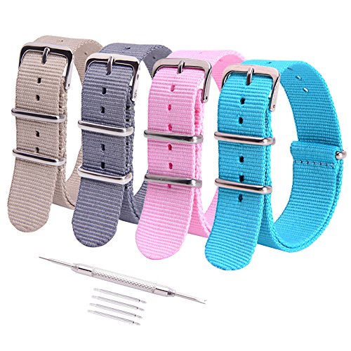 Ritche 2pc 22mm NATO Ss Nylon Striped Black/Red,Black/Gray Interchangeable Replacement Pebble Lg Watch Band