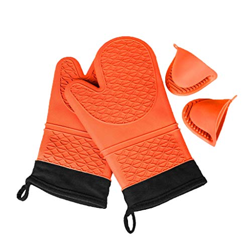 KEDSUM Professional Heat Resistant Silicone Extra Long Oven Mitts with Quilted Liner & Oven Mini Mitt