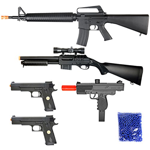 BBTac Airsoft Package - Lot of 5 Airsoft Guns Sniper Rifle Shotgun Machine Pistols & 1,000 6mm Bbs