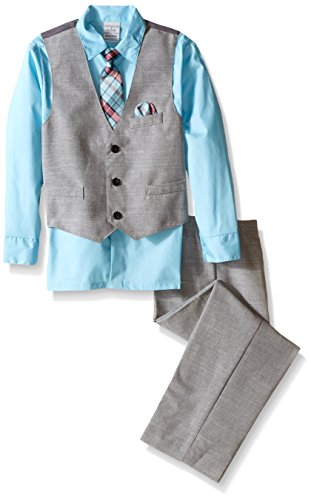 Perry Ellis Little Boys' Slub End-On-End Vest Set, Petite Four, 5