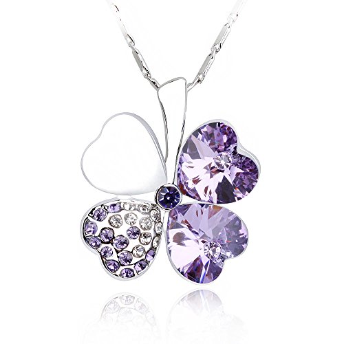 Blue Chip Unlimited Sparkling Colored Heart Shaped Clover Charm Necklace