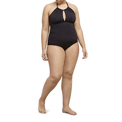 Kenneth Cole REACTION Women's Plus-Size Ruffle Shuffle Solid High-Neck Swimsuit, Black, 1X