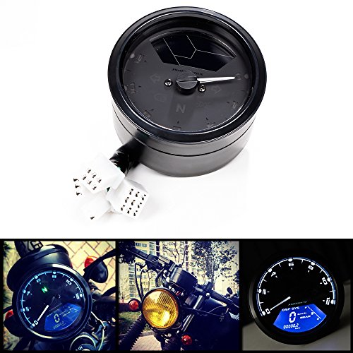 All-in-one 12000 rpm MPH Blue LED Backlight Digital Signal LCD Odometer Speedometer Tachometer 199 kmh for Motorcycle Custom Cruiser Café Racer