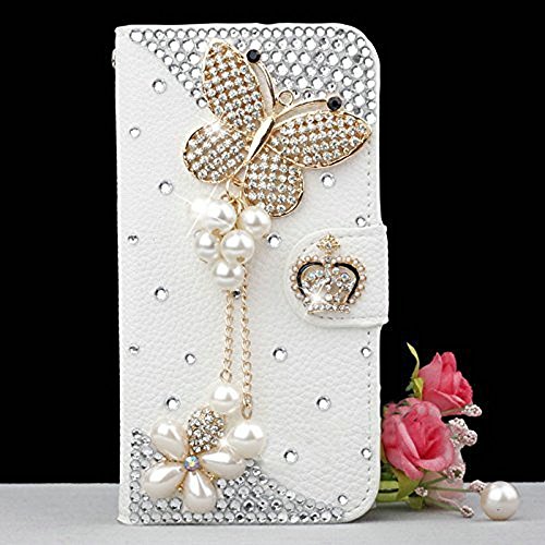 Spritech(TM Bling Butterfly Galaxy S6 Edge+ Case Luxury 3D Fashion Handmade Bling Crystal Rhinestone Pu Flip Wallet Leather Case Cover for Samsung Galaxy S6 Edge Plus