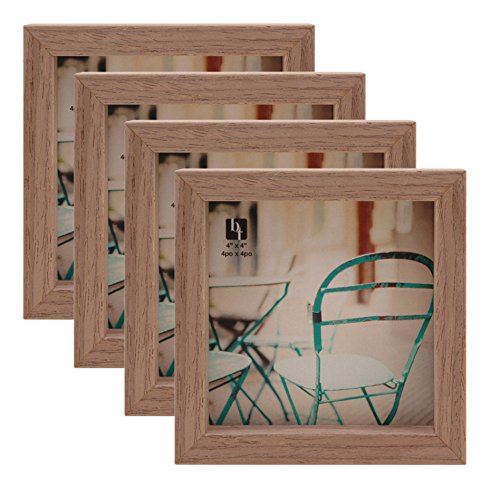BorderTrends Shadow 4x4-Inch Square Wood Photo Frame, Natural Brown (4-Pack)