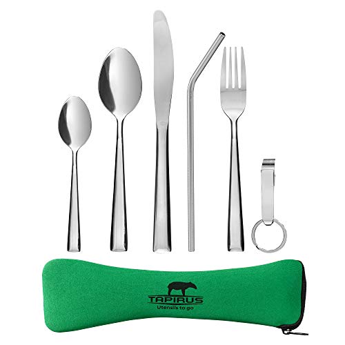 Tapirus Camping Eating Utensils To Go | Durable Stainless Steel Lightweight Construction Flatware | Travel Mess Cutlery Kit With Spoon, Teaspoon, Knife, Fork & Bottle Opener | Comes In A Carrying Case