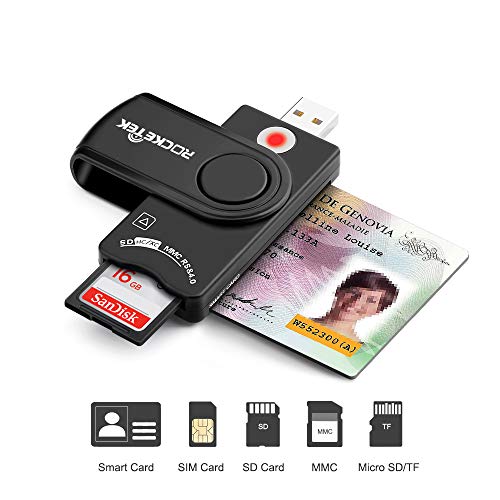 USB Smart Card Reader, Rocketek DOD Military USB CAC Memory Card Reader compatible with Windows, Linux/Unix, MacOS X - Build in SDHC/SDXC/SD Card Reader & Micro SD Card Reader for SIM and MMC RS & 4.0