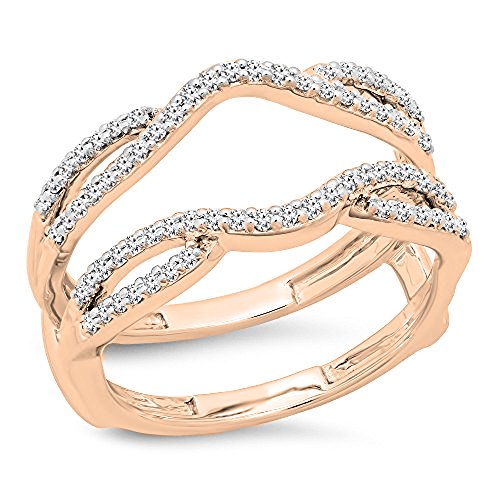 Dazzlingrock Collection 0.35 Carat (ctw) 10K Round Cut White Diamond Ladies Wedding Band Guard Double Ring 1/3 CT, White Gold