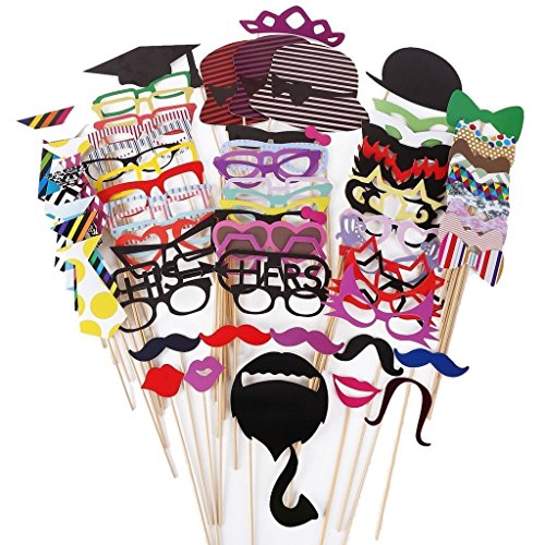 KIMILAR 76pcs Newest Photo Booth Props DIY Kit for Wedding Party Reunions Christmas Birthdays Photo booth Dress-up Accessories Costumes with Mustache on a stick, Hats, Glasses, Mouth, Bowler