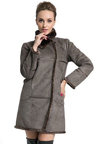 OVONZO Women's Winter Style Soft Faux Suede Leather Pea Coat Hip Length Black Size XXL