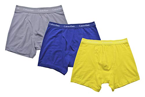 Calvin Klein Men's Cotton Stretch Boxer Briefs, Black/Caneel Bay/Solar Yellow/Bridge Blue, Large