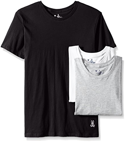 Psycho Bunny Men's 3-Pack Vintage Cotton Crew Neck T-Shirt, Black/White/Heather Grey, Large