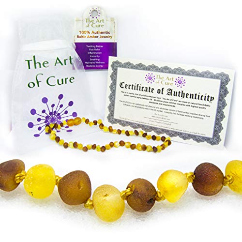 The Art of Cure Original Baltic Amber Necklace- Raw Handmade (Raw 1x1) for boy or girl – 12-12.5 Inches size