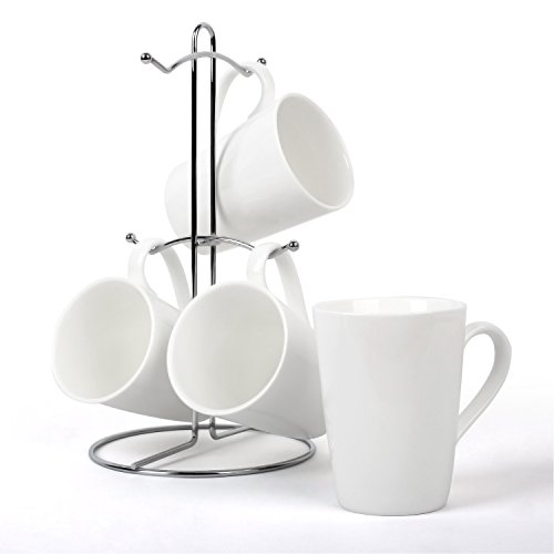 Kicode Tusy Coffee Cups and Chrome Rack Sets High Quality Fine Porcelain