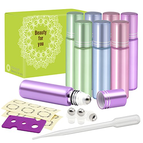 Pack of 8-Glass Roll on Bottles - 10ml Glass Roller Bottles for Essential Oil, Empty Aromatherapy Essential Oils,Perfume Bottles - Refillable Slim with Metal Ball by Mavogel
