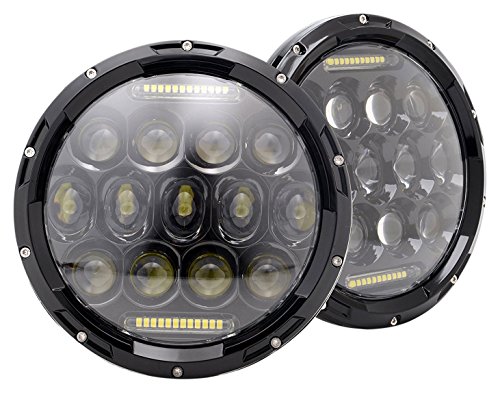TURBOSII DOT Approved Pair 7" 75W Round Driving Led Headlights With White DRL Hi/Lo Beam For Jeep Wrangler CJ-5 CJ-7 1997-2017 TJ LJ JK JKU Rubicon Sahara Chevy Blazer Toyota Land Cruiser Hummer H2