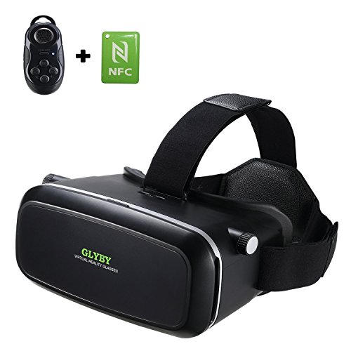 Glyby 3D VR Virtual Reality Glasses Headset with Head-mounted Headband and NFC Tag for 3.5-6.0 Inch Google, iPhone, Samsung Note, LG Nexus, HTC, Moto Smartphones
