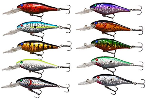 JSHANMEI Fishing Lures Hard Bait Minnow Lure with Treble Hook Life-Like Swimbait Fishing Bait 3D Fishing Eyes Crankbait for Bass Trout Walleye Redfish (Type A: 10pcs)