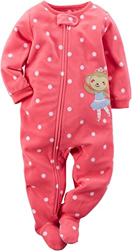 Carters Little Girls Monkey Micro-Fleece Sleeper Pink Polka Dot Monkey 3T