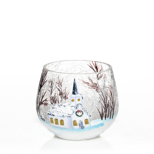 Yankee Candle White Christmas Crackle Snow Holiday Tea Light Holder With Church