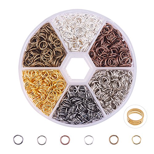 PandaHall Elite About 1800 Pcs Iron Open Jump Rings Unsoldered Diameter 6mm Wire 21-Gauge 6 Colors for Jewelry Findings