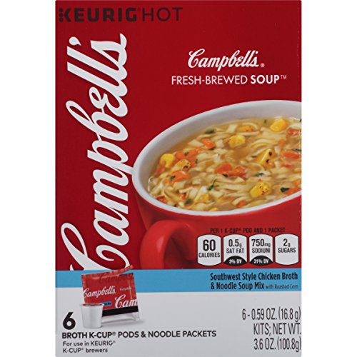 Campbell's Fresh-Brewed K-Cup Soups, Southwest Style Chicken Broth and Noodle Mix, 6 Count