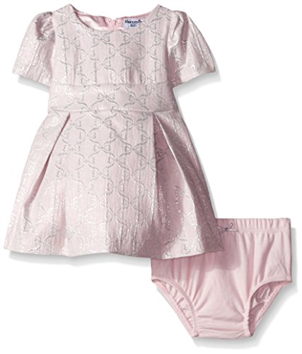 Hartstrings Baby Girls' Bow Pattern Woven Jacquard Dress and Diaper Cover Set, Taffy Pink, 6-9 Months