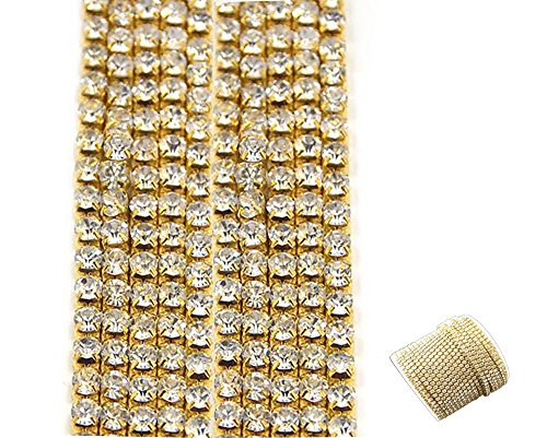 Black Menba 32.8 Feet Sparkle Crystal Rhinestone Close Claw Chain 2mm Clear Trim Sewing Craft DIY Cell Phone Case(gold)
