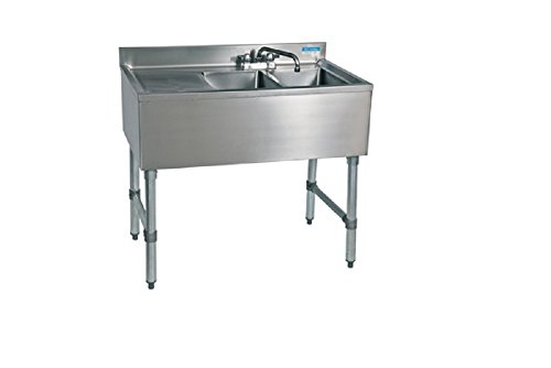 Slim-Line Stainless Steel Underbar Sinks 36", 2 Bowls w/ Left Drainboard; restaurant, commercial