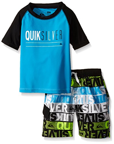 Quiksilver Little Boys' 2 Piece Rashguard Top with Microfiber Short, Red, 4T