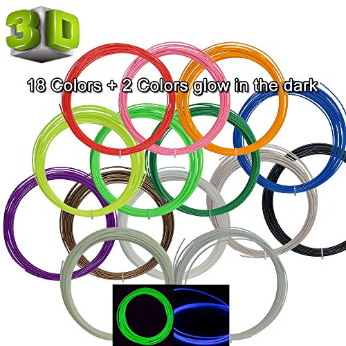 DEWANG® 3D Filament Fun Pack - BONUS GLOW IN THE DARK COLOR INCLUDED - 1.75mm ABS - 656 Linear Feet Total of 20 Different Colors in 32 Foot Lengths