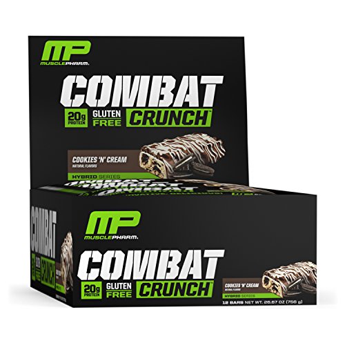 MusclePharm Combat Crunch Protein Bar, Multi-Layered Baked Bar, Gluten-Free Bars, 20 g Protein, Low-Sugar, Low-Carb, Gluten-Free, Cookies 'N' Cream Bars, 12 Servings