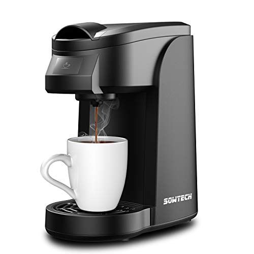 Single Serve Coffee Maker, SOWTECH One Touch Operation Coffee Machine for Most single cup pods, Quick Brew Technology Travel One Cup Coffee Brewer (silver)