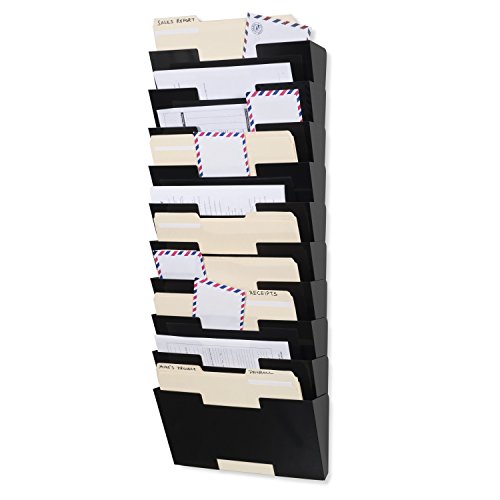 Wallniture Lisbon Wall Mounted Steel File Holder - Organizer Rack 10 Sectional Modular Design Letter Size 13 Inch - Multi-Purpose Organizer Display Magazines - Sort Files and Folders (Black)