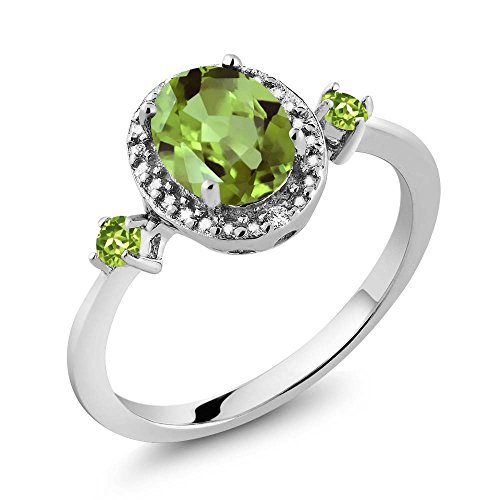 Gem Stone King 925 Sterling Silver Green Peridot & Diamond Accent Women's Ring 1.48 cttw (Available 5,6,7,8,9)