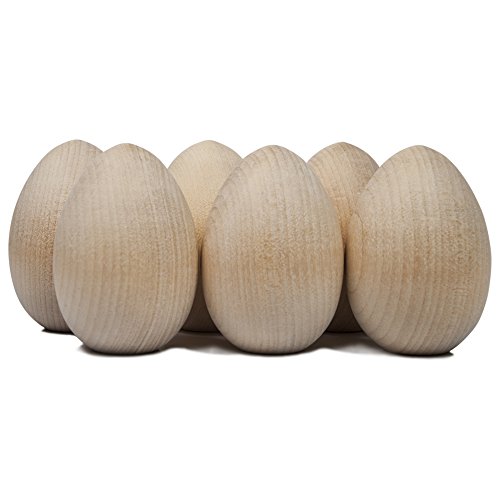 Unpainted Wooden Eggs - For Easter, Crafts and more - 2-1/2" x 1-3/4" - Bag of 6 - by Craftparts Direct