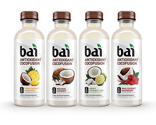 Bai Coconut Flavored Water, Cocofusions Variety Pack, 18 Fluid Ounce Bottles, 12 count, 3 each of Andes Coconut Lime, Maui Coconut Raspberry, Molokai Coconut, Puna Coconut Pineapple