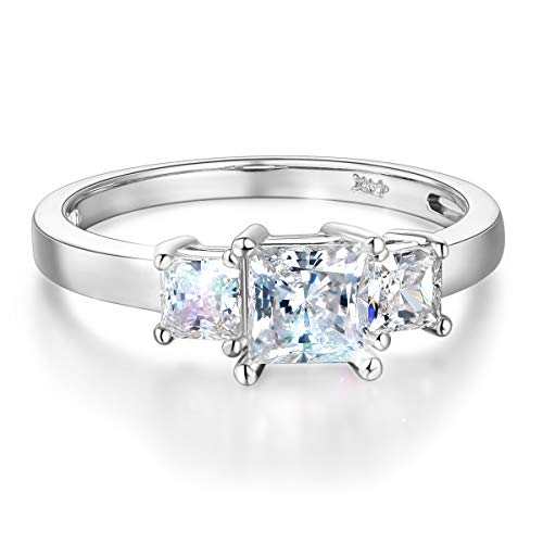Wellingsale Ladies Solid 14k White Gold CZ Cubic Zirconia Princess Cut Three 3 Stone Engagement Ring - Size 5.5