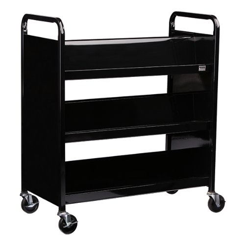 Norwood Commercial Furniture - Welded Steel Double-Sided Sloped-Shelf Book Truck w/ 3 Shelves (37" W) - Black