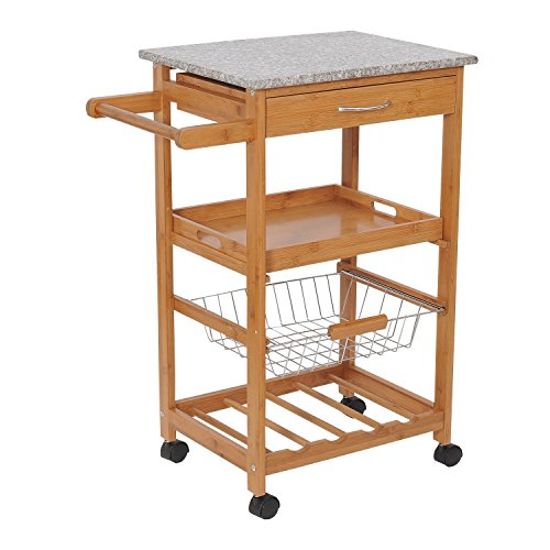 HomCom 31” Kitchen Island Rolling Storage Cart With Granite Top and Fancy Wine Rack