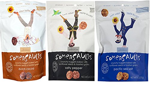 Somersaults Sunflower Seed Bites Variety Pack - Sea Salt, Dutch Cocoa, Salt & Pepper (Pack of 3), 6 Oz. Each