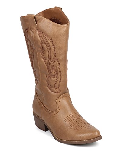 Pierre Dumas Women Leatherette Embroidered Mid Calf Western Riding Boot BI89 - Natural