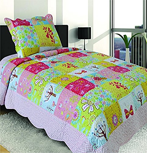 Mk Collection 2 Pc Bedspread Teens/girls Pink Yellow Green Blue Butterfly Floral New 006