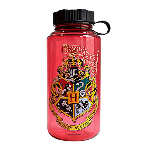 Silver Buffalo HP0119 Warner Bros Harry Potter Movie Hogwarts Shield with Flag Plastic Water Bottle, 1-Liter