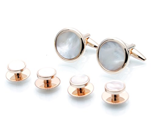 Rose Gold White Mother of Pearl Cufflinks and Dress Studs Sets Tuxedo MOP Cuff Links & Stud Set