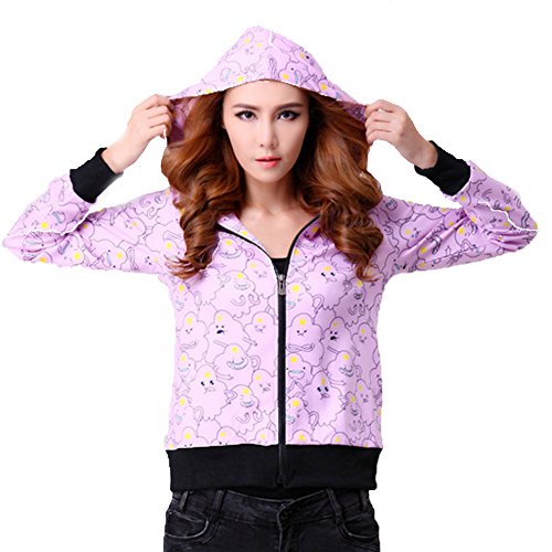 Women Fashion Printed Hoodies Hooded Sweatshirt Autumn Winter Purple with Zipper (S)