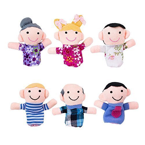 Super Z Outlet Mini Grandparents, Mom & Dad, Brother & Sister Family Style Finger Puppets for Children, Shows, Playtime, Schools - 6 Piece